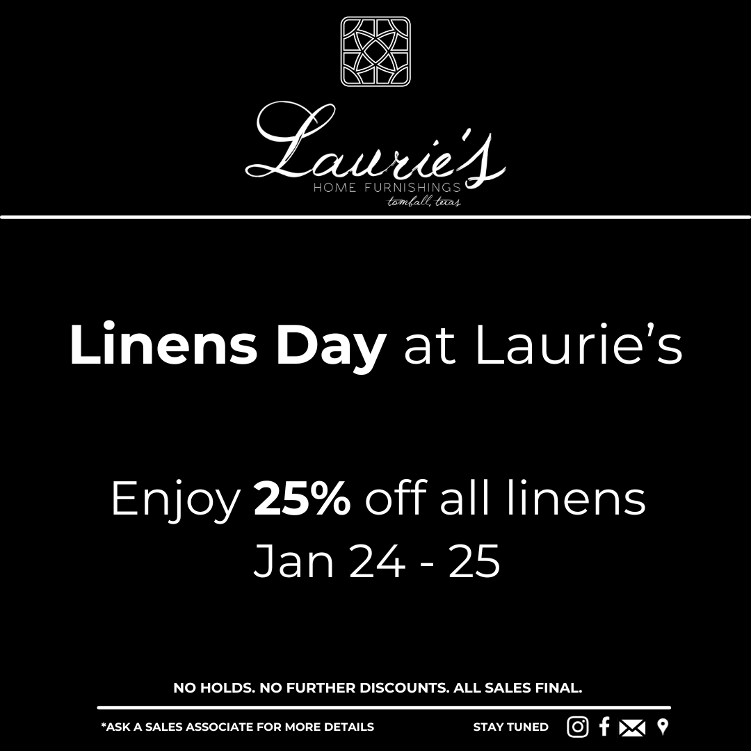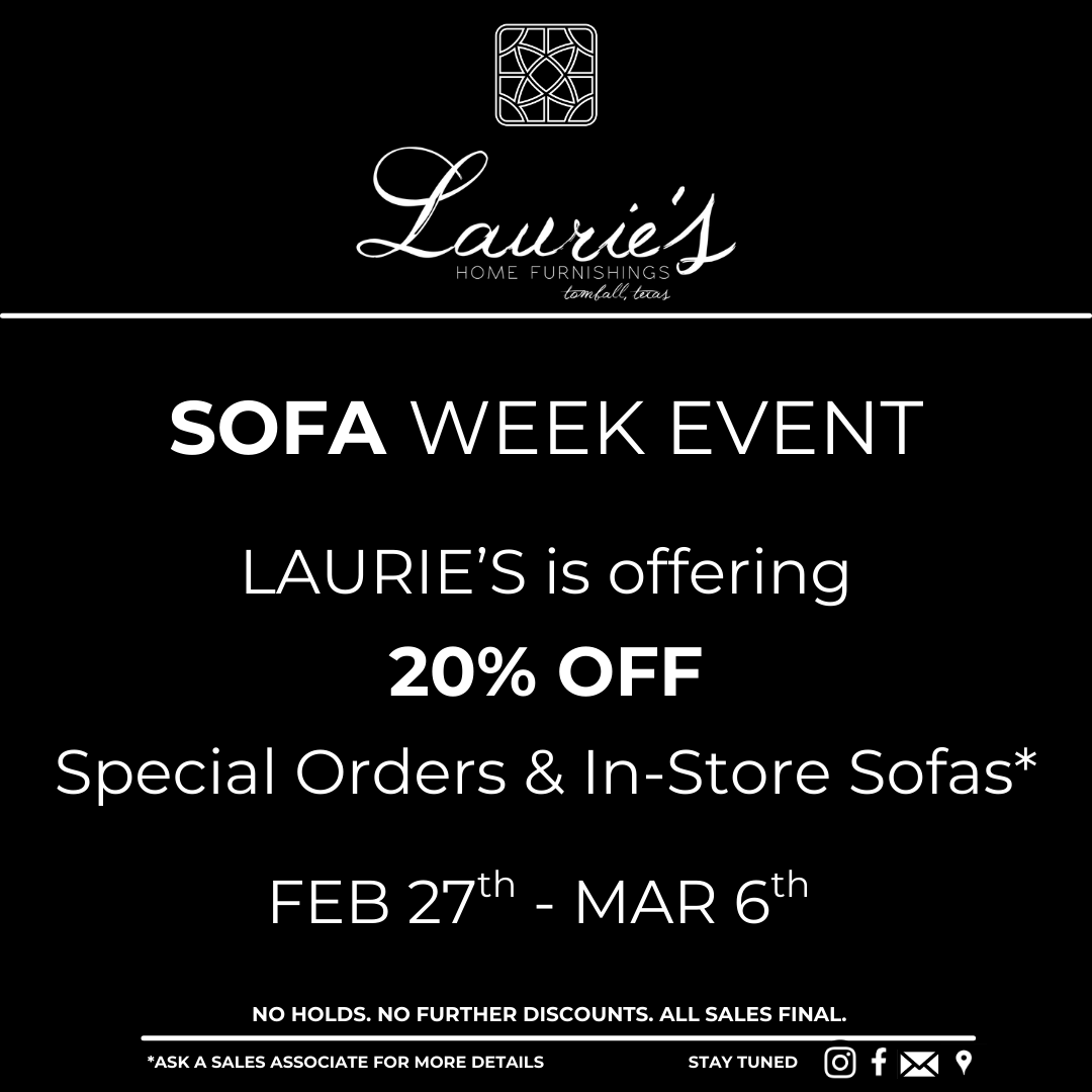 Welcome to our Upcoming Events page at Laurie’s Home Furnishings! We’re thrilled to share the latest happenings and exclusive sales with you. Our showroom is constantly evolving, offering fresh inspiration with every visit. That’s why we encourage you to check back often—you won’t want to miss what’s coming next!